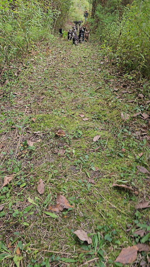 Our dogs start a socialization and behavior program early and continue until adoption. Our puppies will have started potty training, leash training, crate training, noise desensitization, puppy manners, and more by the time they are adopted.